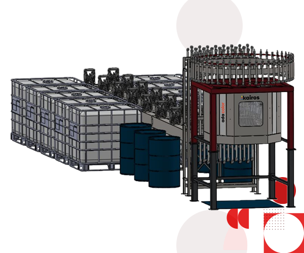 Ada Color Carmine can be produced in different layouts according to the current production area. Components can be connected to the system in 200 lt drums, IBCs or tanks of different volumes and sizes.